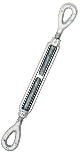 턴버클: 두 개의 너트가 서로 반대 방향으로 나사가 되어 있는 너트입니다. 너트를 돌려서 길이를 조절할 수 있습니다. 철사나 케이블을 장력을 주어 고정할 때 사용합니다.