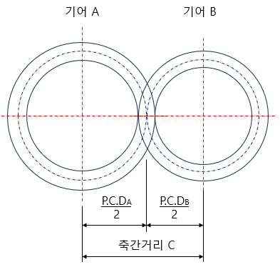2. 두 기어의 중심거리 구하기